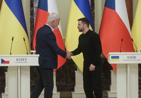 PRAGUE (Reuters) – Ukrainian President Volodymyr Zelenskiy said on Sunday that a ceasefire with Russia in its more than three-year-old war was possible at any moment and called on Kyiv’s allies to apply greater pressure on Moscow to put the measure in place.