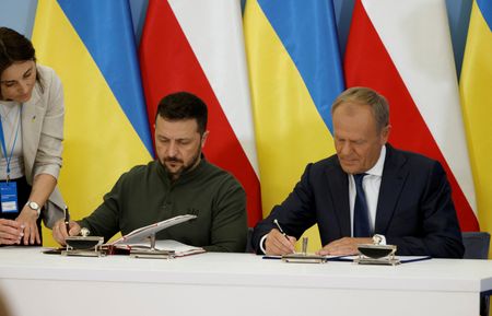 WARSAW/KYIV (Reuters) – Ukraine will retaliate after a Russian missile strike killed at least 29 people and damaged a children’s hospital in Kyiv, President Volodymyr Zelenskiy said on Monday during a visit to Warsaw during which he signed a security pact with Poland.
