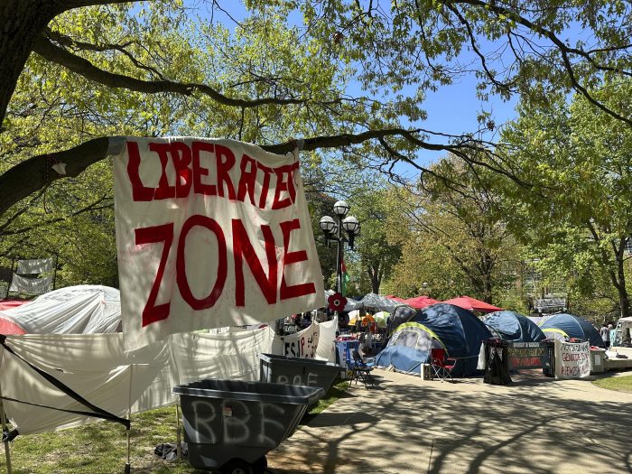 Protesters have erected dozens of tents on the Diag, a historic space for campus activism more than a mile away from the stadium. They’re demanding that Michigan cut financial ties with companies connected to Israel. There has been no effort to break up the encampment and no arrests.