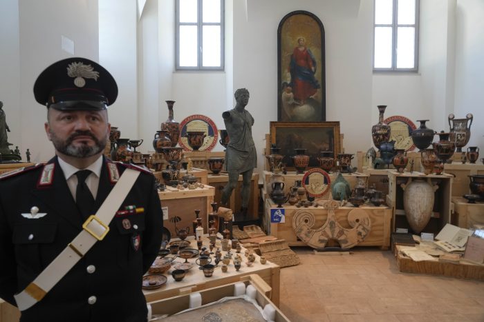 ROME (AP) — Italy on Tuesday celebrated the return of around 600 antiquities from the U.S., including ancient bronze statues, gold coins, mosaics and manuscripts valued at 60 million euros ($65 million), that were looted years ago, sold to U.S. museums, galleries and collectors and recovered as a result of criminal investigations. U.S. Ambassador Jack […]