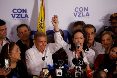 CARACAS (Reuters) – Venezuela opposition leader Maria Corina Machado said early on Monday that opposition candidate Edmundo Gonzalez won 70% of the vote in a presidential contest over the weekend. The declaration came despite the national electoral council announcing a 51% victory for President Nicolas Maduro, contradicting several exit polls. (Reporting by Julia Symmes Cobb)