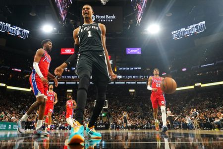 San Antonio star center Victor Wembanyama missed the second half of the Spurs’ Monday game against the Philadelphia 76ers after sustaining a left rib contusion during a second-quarter collision with the 76ers’ Paul George.