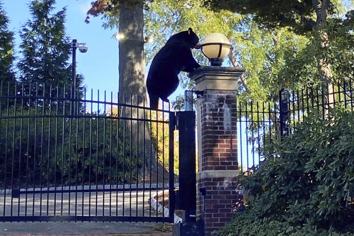 Then, as Kornafel’s husband drove and she grabbed her phone to take photos, the animal strode up the driveway to the 19th-century estate and scrambled up the tall metal gate. She photographed the bear standing on its hind legs on the gate, with its front paws on an adjacent pillar and its snout nosing about a globe-shaped light.