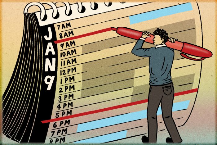 Bobby Dutton, the founder of event production company GBM6, uses a technique he calls “aggressive calendering.” He schedules the task he’s most likely to procrastinate on, such as handling contracts and invoices, for every Monday at 2 p.m. To keep his calendar from becoming overloaded, he also books time for recurring routine tasks like making coffee, walking the dog and eating lunch.